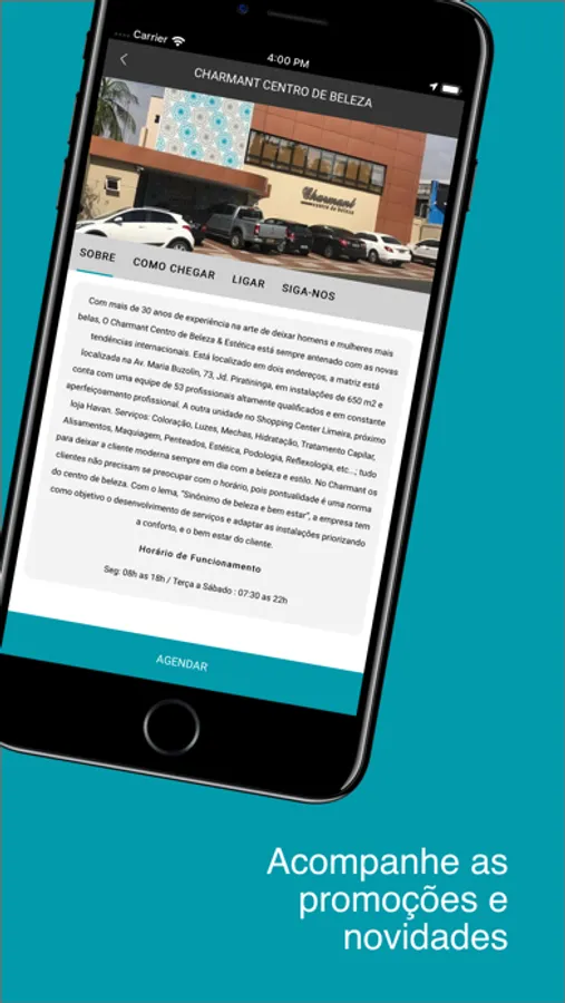 Agende seu atendimento no Charmant Centro de Beleza de forma simples e intuitiva, com apenas alguns cliques.