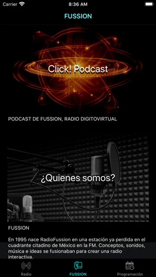 Transmitiendo desde la CDMX, FUSSION reta a las conciencias y a las inteligencias. Proyecta música Rock y todas sus variables post-modernas, tanto en inglés como en español. Fusiona la cultura, el arte y la música con la vida cotidiana, haciéndolo un medio interactivo y en tiempo real.