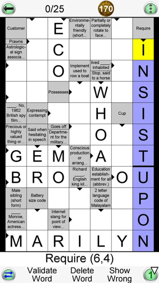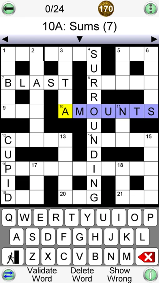 The word lists, clues and answers are in English, or you can play in 34 other languages.