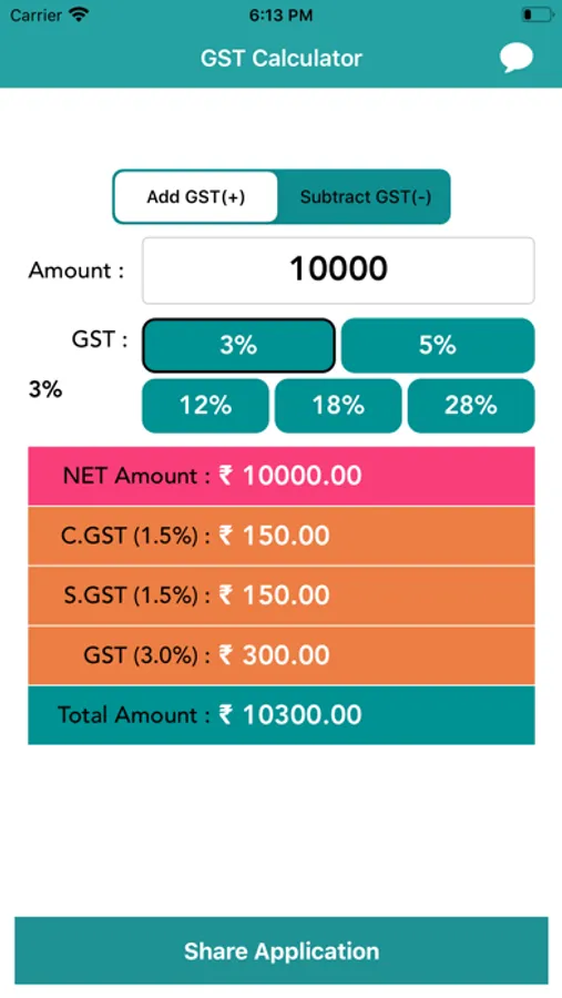 We have a predefined set of GST Rates which are 3%, 5%, 12%, 18%, and 28% so that you can quickly carry out the calculation. You can customize the Rates as per your need in settings. You can also share or copy your calculations with handy buttons.