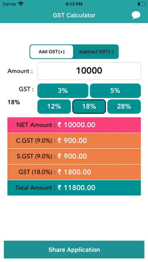 » Add or Remove the GST from given amount with touch of a button