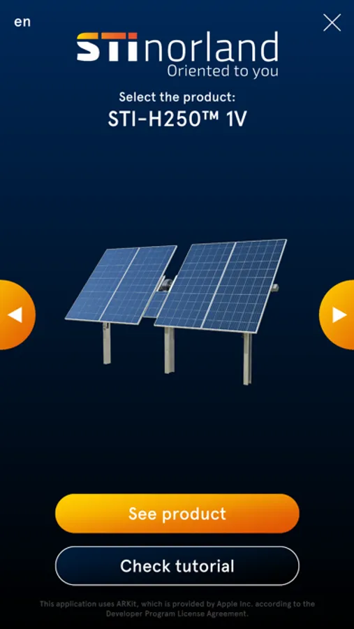 Augmented reality application from STI Norland with its solar trackers and fixed-tilt strutures.