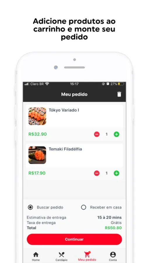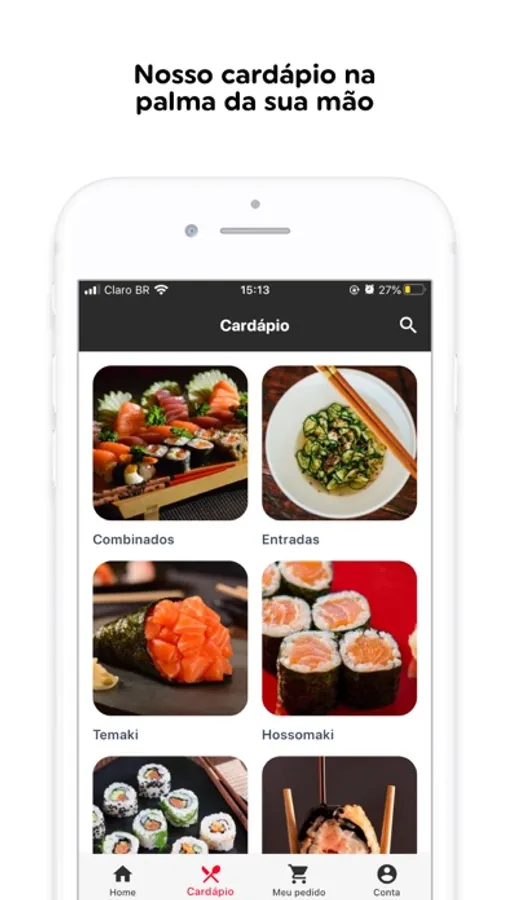 No app, você encontra de forma rápida o cardápio completo e ainda pode utilizar a ferramenta de busca para localizar diretamente os produtos que você deseja.
