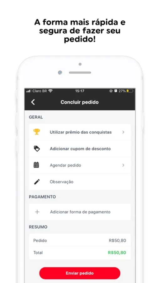 Para nos ajudar a melhorar cada vez mais a sua experiência, você também pode avaliar cada pedido e dar sugestões diretamente no aplicativo.