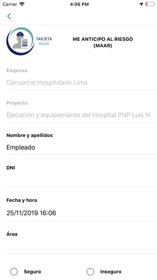 Tarjeta MAAR, aplicativo que nos ayuda a reportar los riesgos de seguridad que se puedan presentar en el ambiente laboral. Así mismo, nos permite obtener reportes de los eventos ocurridos en un intervalo de tiempo específico.