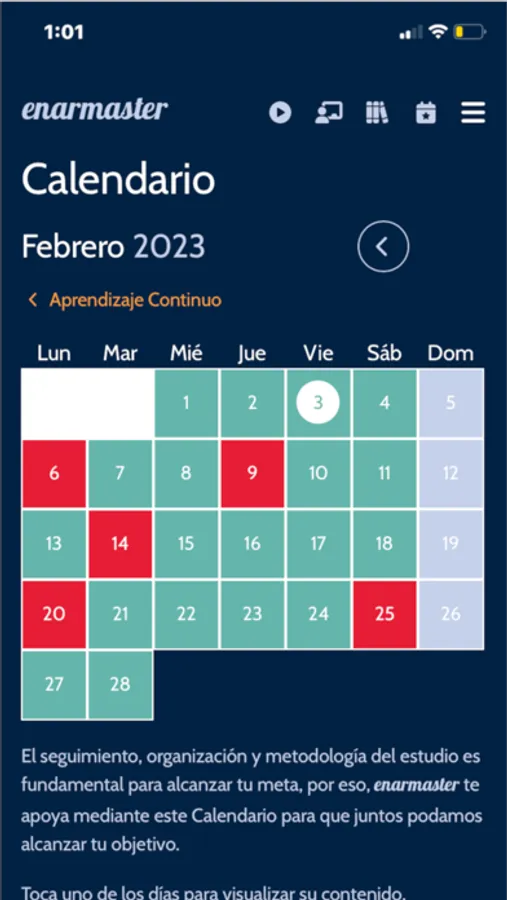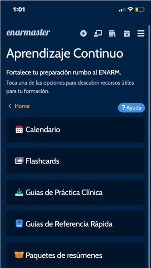 Mantente al día y prepárate de la forma más completa con una gran gama de herramientas a tu disposición: Calendario de estudio, Guías de Práctica Clínica (GPCs), Paquetes de resúmenes, Flashcards, Perlas ENARMaster y un amplio catálogo de VideoRecursos. Recuerda: el seguimiento, la organización y la actualización constante son fundamentales, es por ello que diariamente nos esforzamos en ofrecerte nuevas y mejores herramientas para que juntos podamos alcanzar tu objetivo.