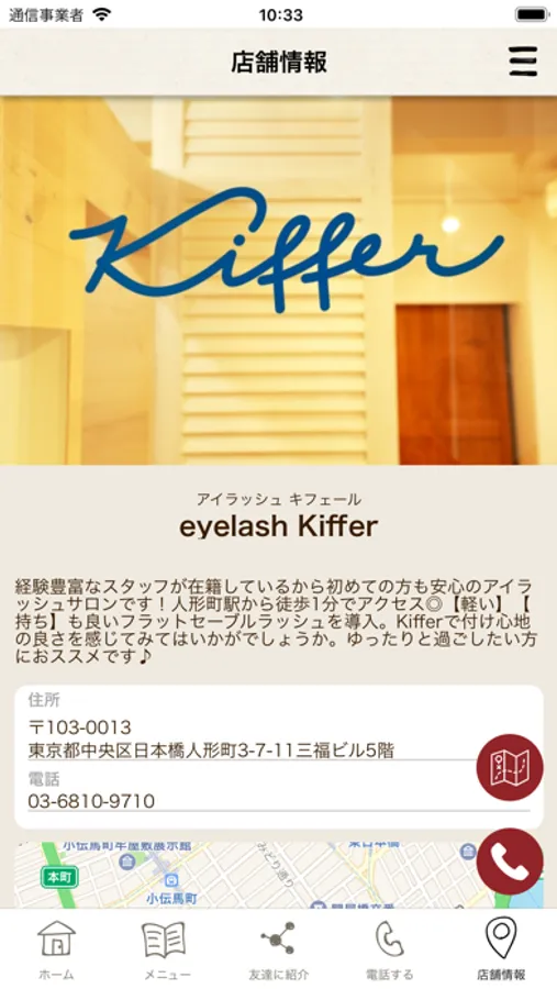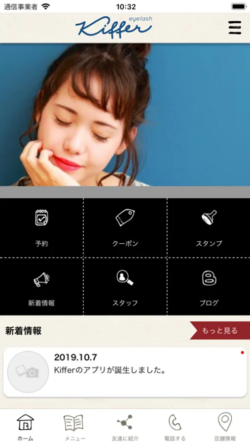 eyelash Kifferの公式アプリが登場。アプリを通して『eyelash Kiffer』の新着情報やお得な情報をリアルタイムで受け取ることができます。また、いつでもお手元のスマートフォンから、メニューや、ご希望のお時間帯のチェック・ご予約などが可能です。アプリをインストールしていただくことにより『eyelash Kiffer』を、より便利に身近にご利用していただけます。
