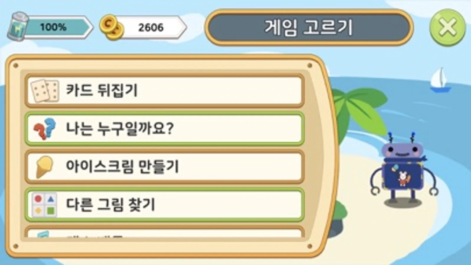 패턴인식, 분해, 추상화, 디버깅, 그리고 알고리즘 개념을 카드 뒤집기card flipping, 아이스크림 만들기 ice cream scopping, 나는 무엇일까요 Guess what, 잘못 된 것 찾아내기Odd ones out, 댄스 배틀 Dance battle 등의 게임과 융합한 교육용 기능성 게임(게이미피케이션)이다.