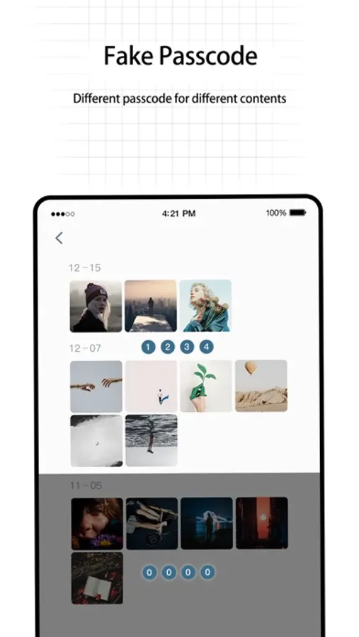 - Create a fake password so someone enters the app will see an ordinary photo album