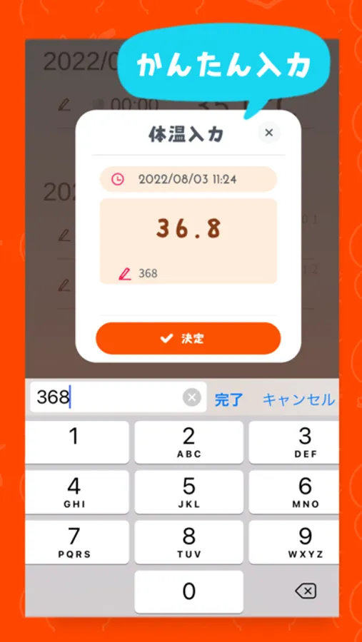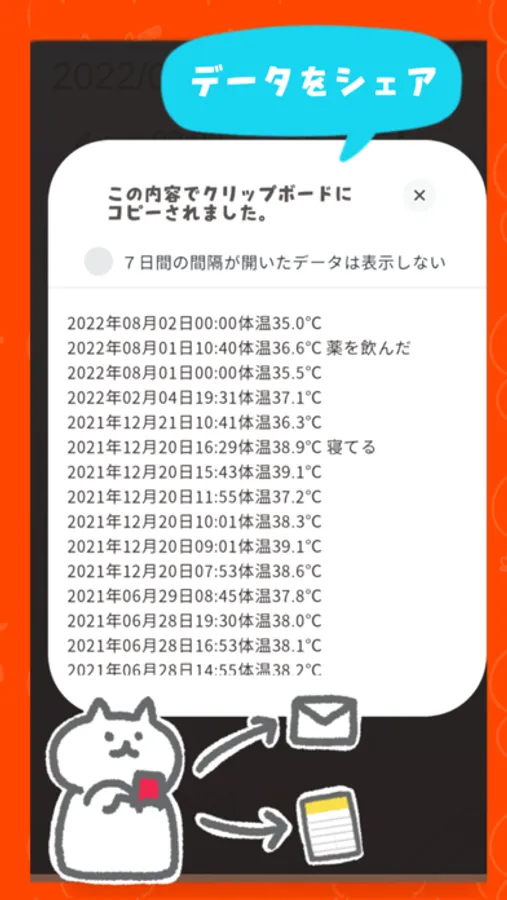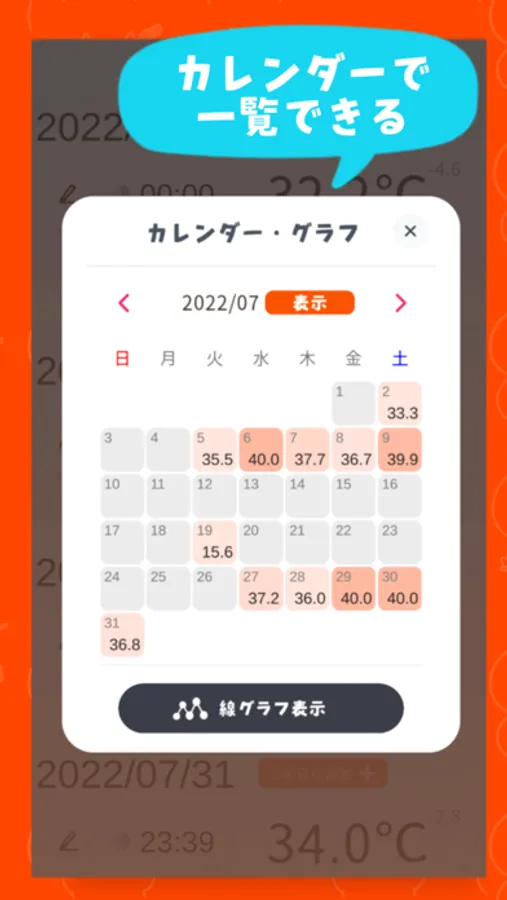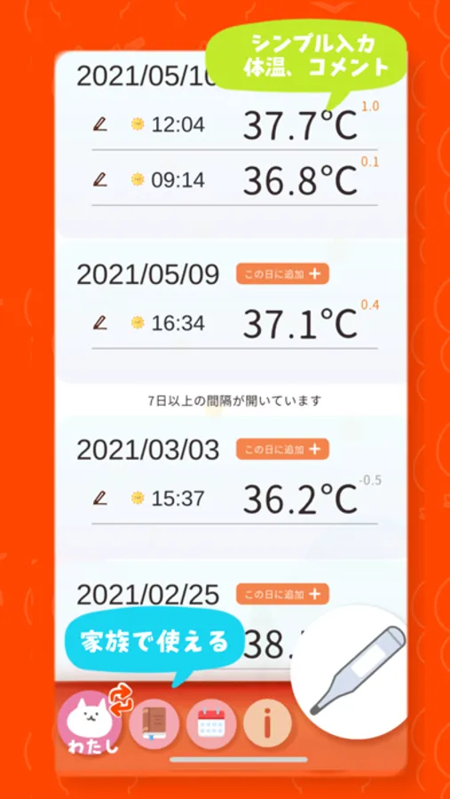 ・体温を記録するためのアプリです。体温を計測する機能はありません。