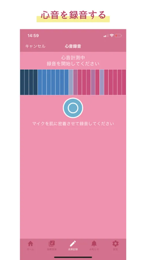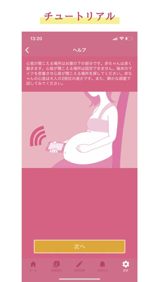 iPhone内蔵マイクを使用することにより、おなかの赤ちゃんの心音や胎動を聴くことができます。その音は録音が可能なため、ママだけでなくパパやご家族、お友達とシェアすることができます。
