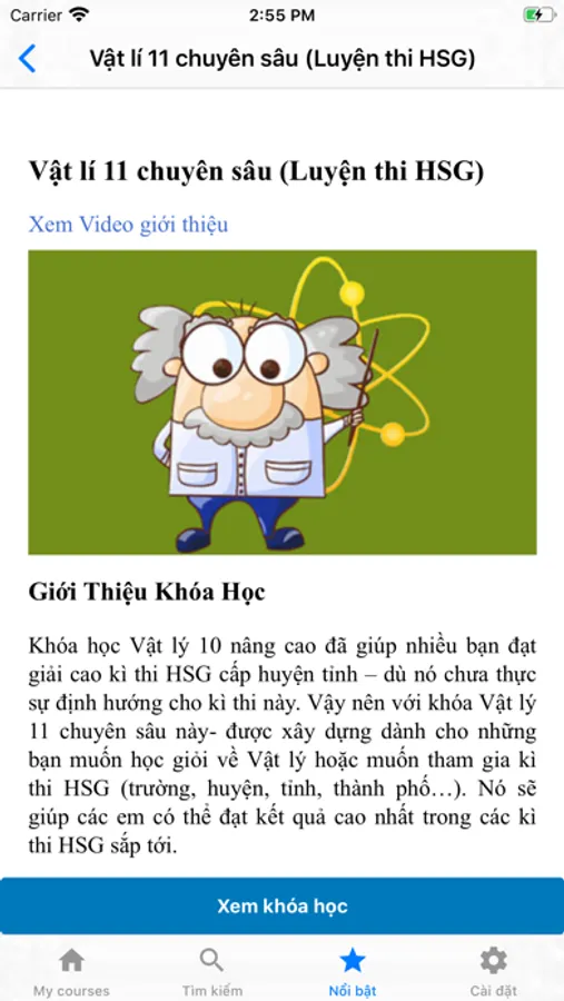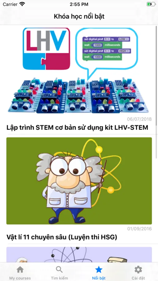 Các khóa học được xây dựng dựa trên video bài giảng và những bài tập trắc nghiệm. Video xây dựng dựa trên sách giáo khoa (cơ bản, nâng cao), chương trình cấp 2-cấp 3, để giúp các em học sinh nắm vững kiến thức trên lớp, hỗ trợ tốt các em trong việc đạt được kết quả cao trong các kì thi. Phụ huynh hoàn toàn có thể cùng con theo học những khóa học này để theo dõi kết quả mà con mình đạt được sau mỗi bài học. Hiện tại chúng tôi cung cấp các khóa học trực tuyến Vật lí 10, 11, 12 từ cơ bản đến nâng cao. Trong tương lai, chúng tôi hi vọng có thể mở những khóa học về lập trình, robot, tiếng anh… dành cho các em học sinh.