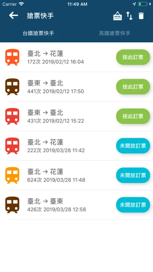 台鐵與高鐵雙鐵時刻表快速查詢,3秒訂票!