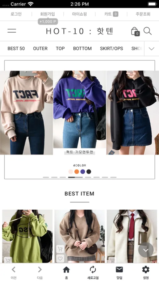 1020 여성의류 쇼핑몰 핫텐 어플리케이션 입니다.