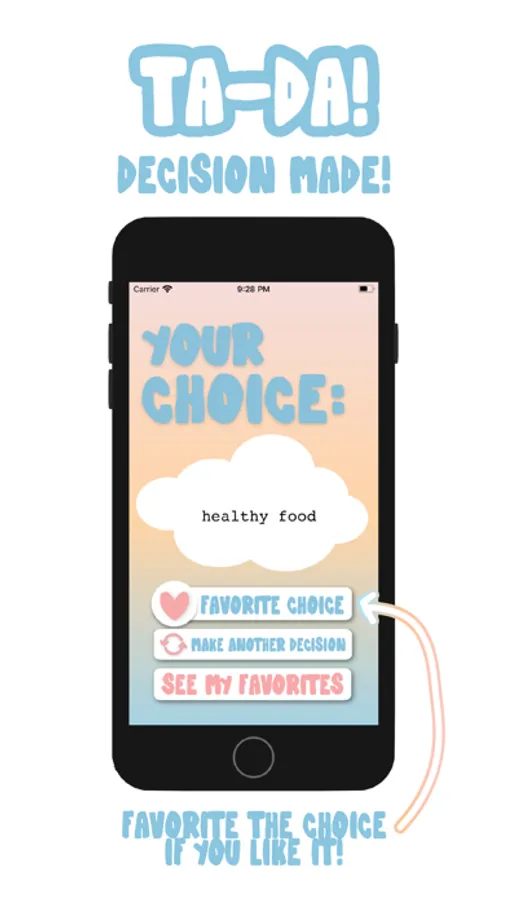 Sometimes it's the little, supposedly "quick" decisions in your day that eat up more time than they should. You should spend more time eating than thinking about what you want to eat. Or in general, you should spend more time doing- not thinking about what to do. If you RELATE, Choosy is the app for you.