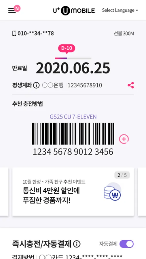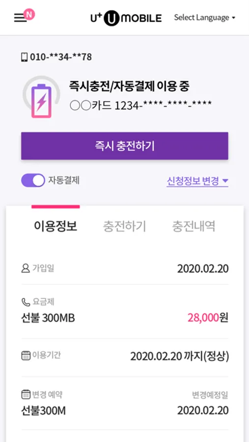 언제어디서든 충전을 하실 수 있는 U+ 유모바일 선불 충전 앱 제공을 위해 노력 하겠습니다.