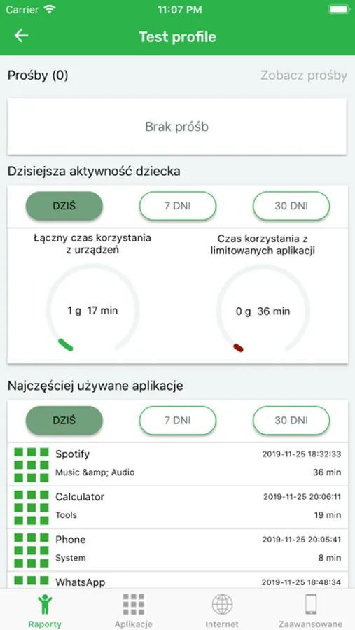 W panelu rodzica znajdziesz informacje dotyczące aktywności dziecka na urządzeniach. Między innymi kategorie odwiedzanych stron internetowych, czas spędzany w Internecie czy zablokowane strony.