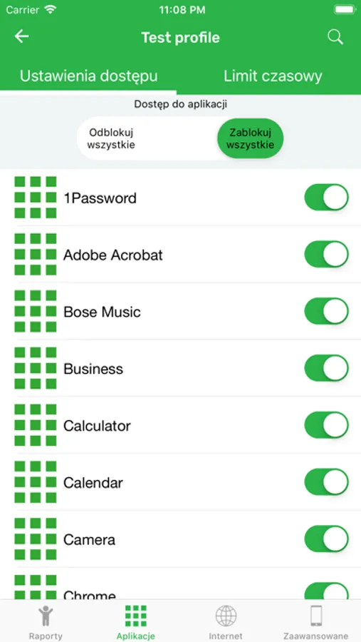 * Zarządzanie czasem spędzanym w Internecie i aplikacjach