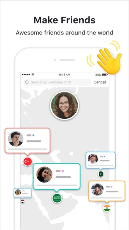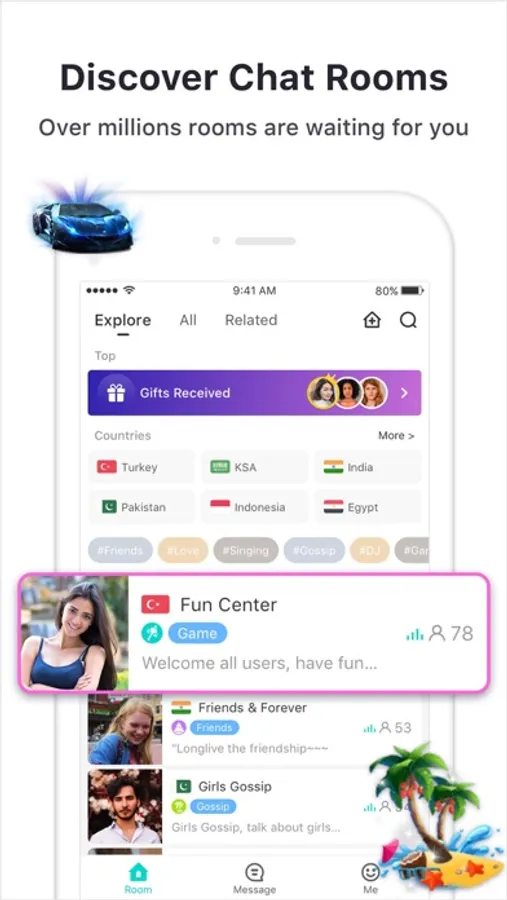 Choose group voice rooms from THOUSANDS live rooms daily, filter rooms by Countries or Topics. 50+ Countries have already been covered, while tons of topics are available to choose from.