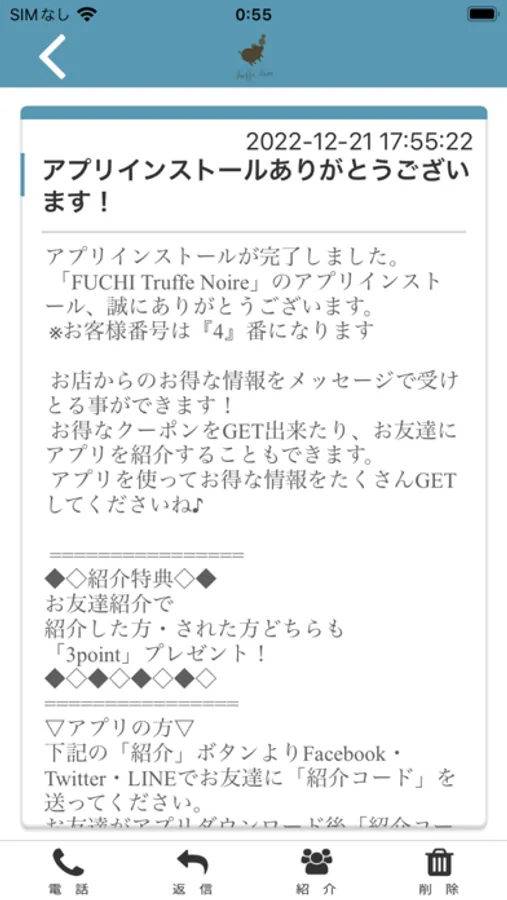 Truffe NoireのアプリをSNSを通じてお友達に紹介する事ができます。
