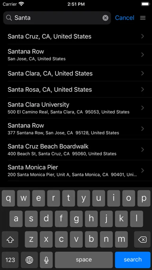-Specify destination on search or map