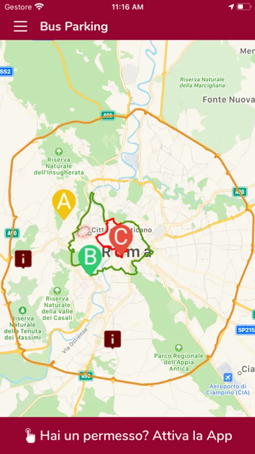 Senza attivazione, la App mostra le informazioni relative alle ZTL BUS vigenti ed ai check point presenti sul territorio.