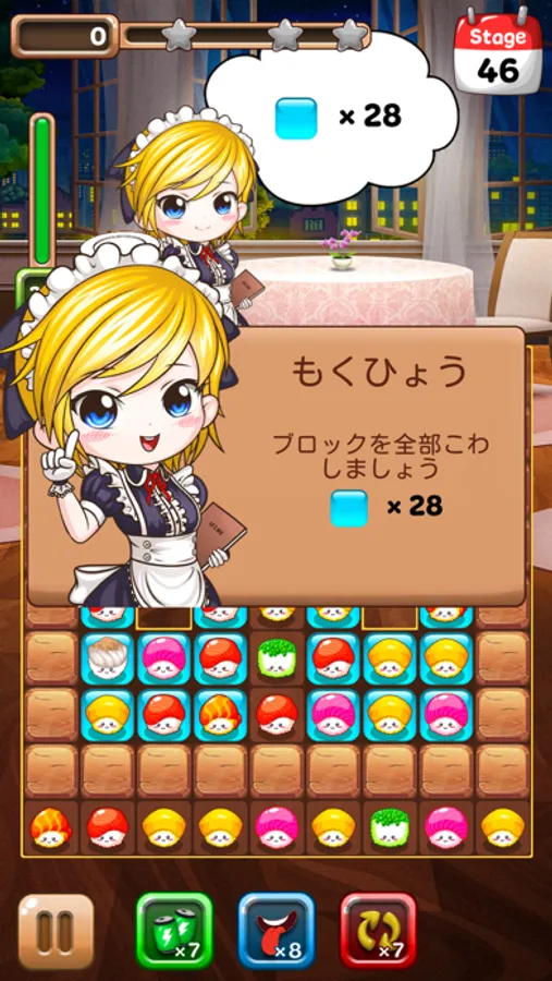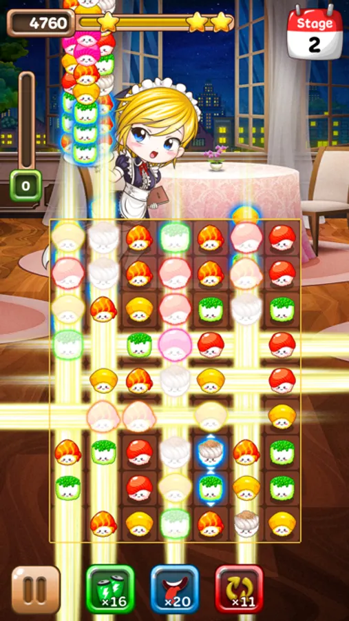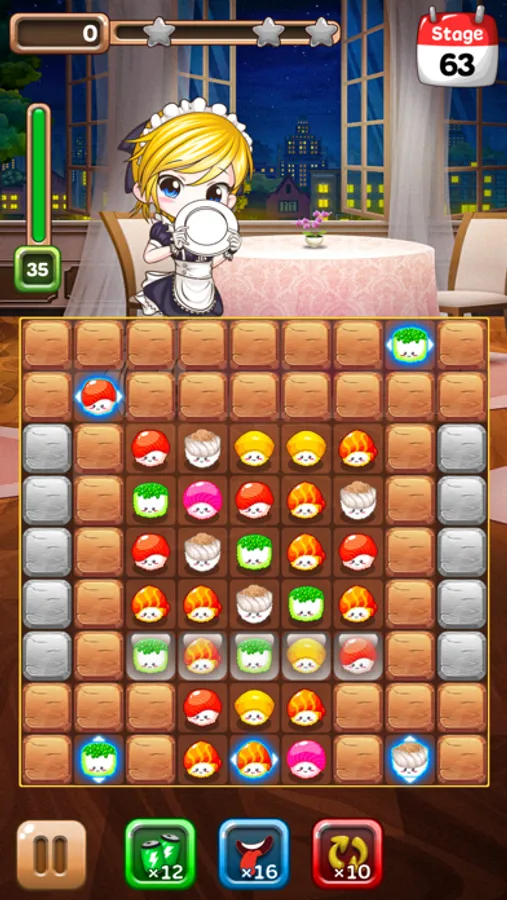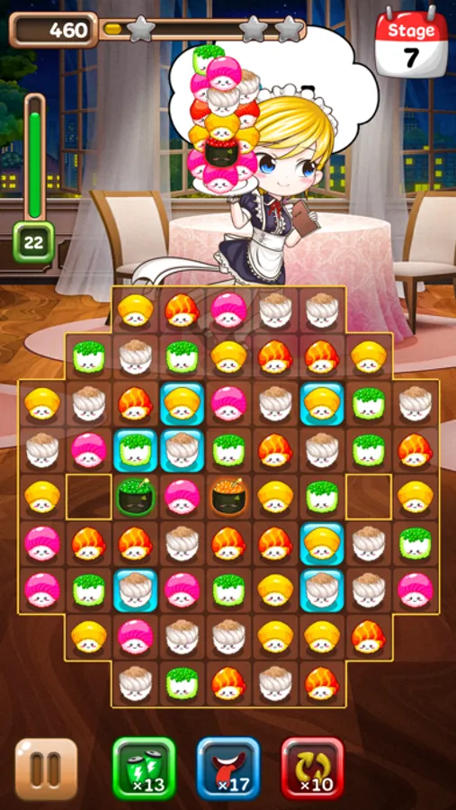 Maid Sushiya is free to play puzzle game with easy gameplay. A cute maid is waiting for your sushi to serve our customers. Clear cute match 3 puzzle to make sushi and satisfy our customer! Can you complete all the level. Join the adventure to become the best Maid Sushiya boss