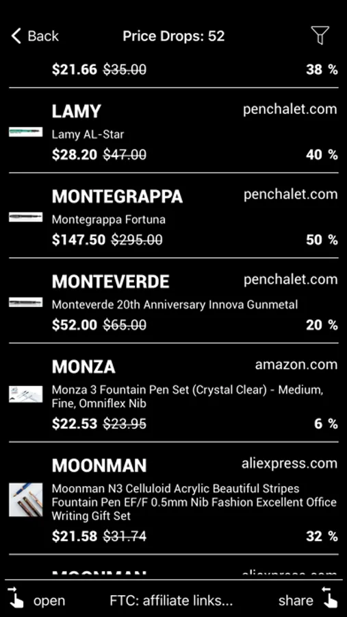 Probably the most useful feature is “price drops” where you can follow sales and special actions to expand your personal collection. At the end, don’t forget to stay updated: follow the most popular YouTube channels about fountain pens and add the ones you would like to follow, if already not included.
