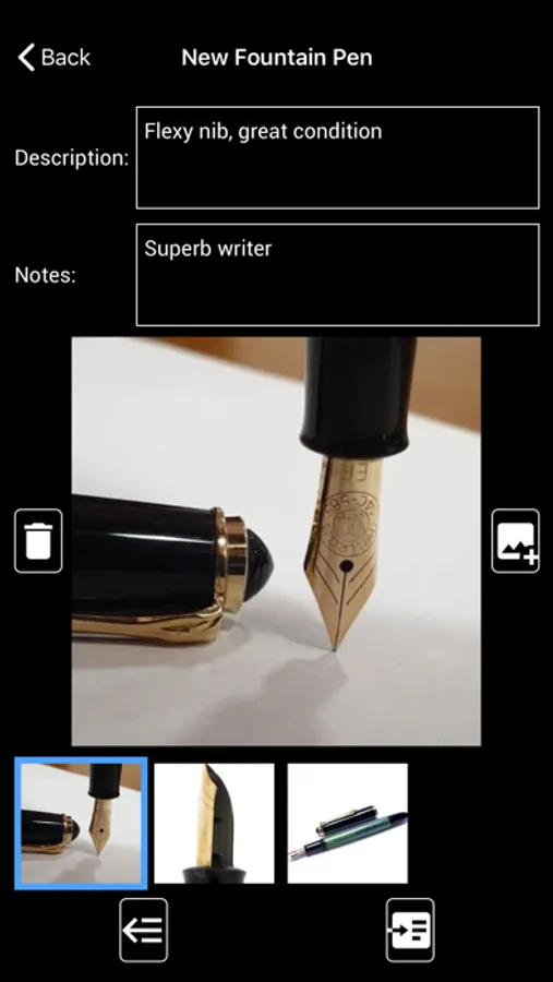 Collection can be searched and sorted by manufacturer of model. Picture can also be joined to each fountain pen by taking it personally or using one from already existing gallery.