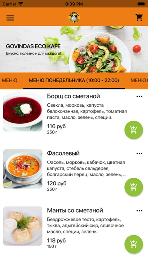 Приложение для службы доставки «GOVINDAS» в Казани для вегетарианцев, людей стремящихся к совершенству, аюрведе, йоге и просто к здоровому образу жизни!
