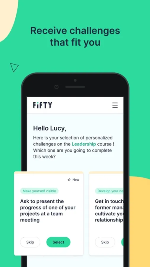 Knowing is good. Doing is better! Achieve (at last) your professional development goals with Fifty. Instead of giving you theoretical advice, we recommend personalized actions to be carried out in real life on the theme of your choice.