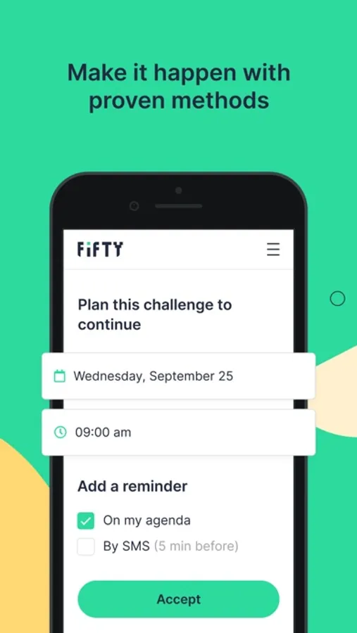 Spend 1mn/week on Fifty to discover, accept and validate your actions and the rest to act in real life.