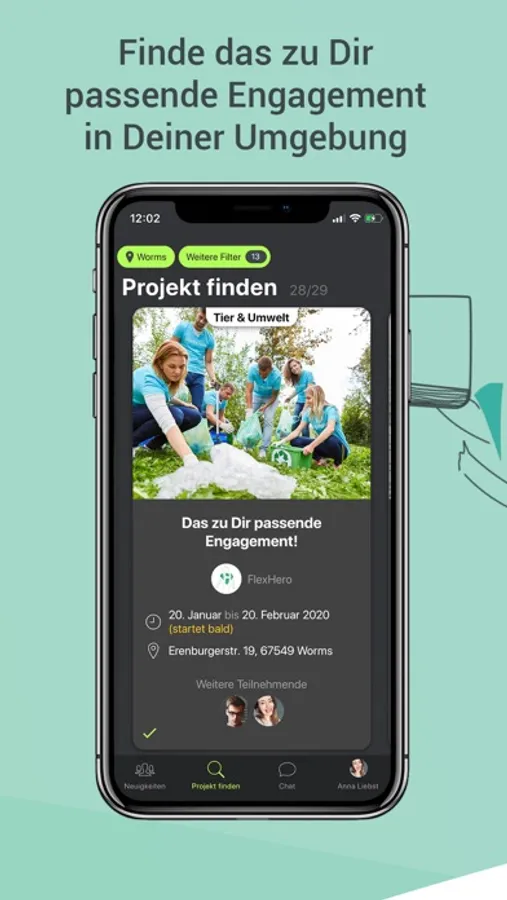 Mit der FlexHero-App kannst Du in Deiner Stadt flexibel Heldentaten vollbringen! Auf unserer Plattform findest Du viele verschiedene soziale und ökologisch nachhaltige Projekte.