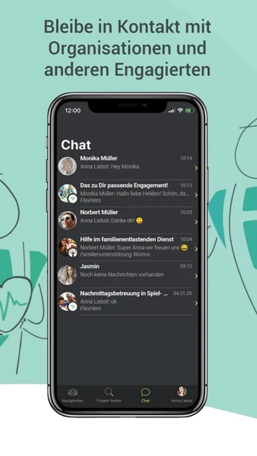 Über den integrierten Chat kannst Du Kontakt mit anderen freiwilligen Helfern und den Verantwortlichen der ehrenamtlichen Projekte aufnehmen und somit Dein eigenes Volunteering-Netzwerk aufbauen.