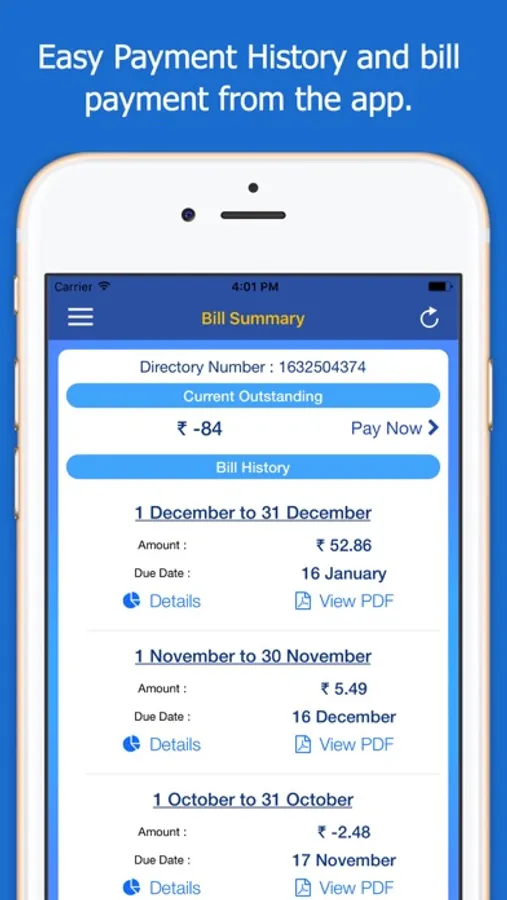 Smart Connect Mobile App Offers following Features to Wireline and Broadband Customers:-