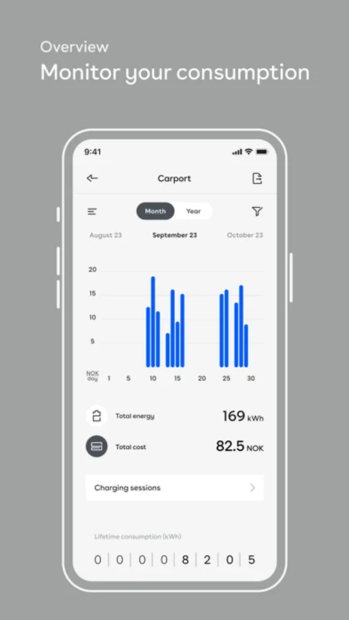 With the Easee app, you have insight into how much you have charged for each month, how much power you are currently charging with and how much you have topped up on the battery of your electric vehicle (EV). In addition, you can monitor the distribution of power on each phase. In addition, you can constantly check the status of the charger, whether the car is connected or not and whether charging is in progress.