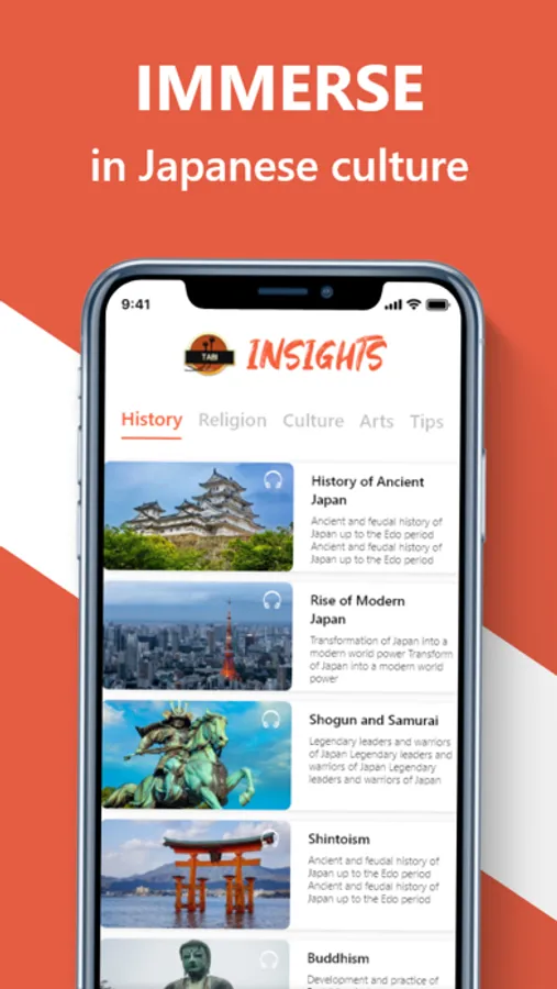 Go beyond simple sightseeing. Download Tabi Audio Japan Guides and make Japan come alive.