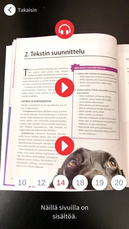2. Kohdista kamera kirjan sivulle, johon on saatavilla video- tai äänitiedostoja.