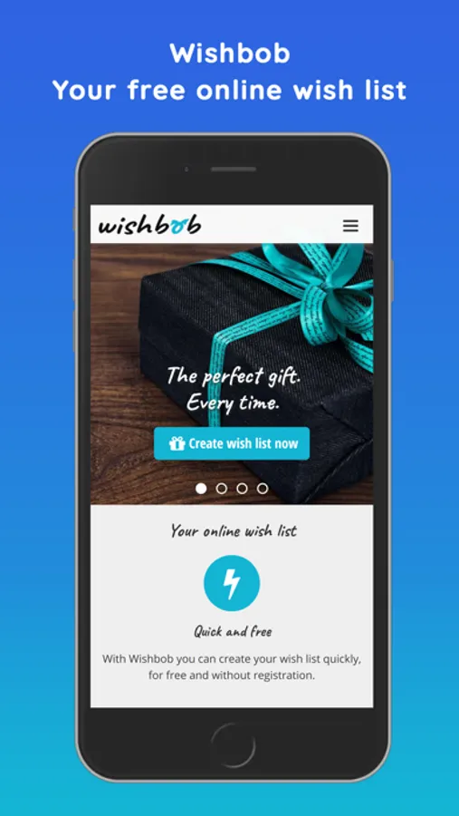 Create your Wishbob wish list quickly, free of charge and without registering.
