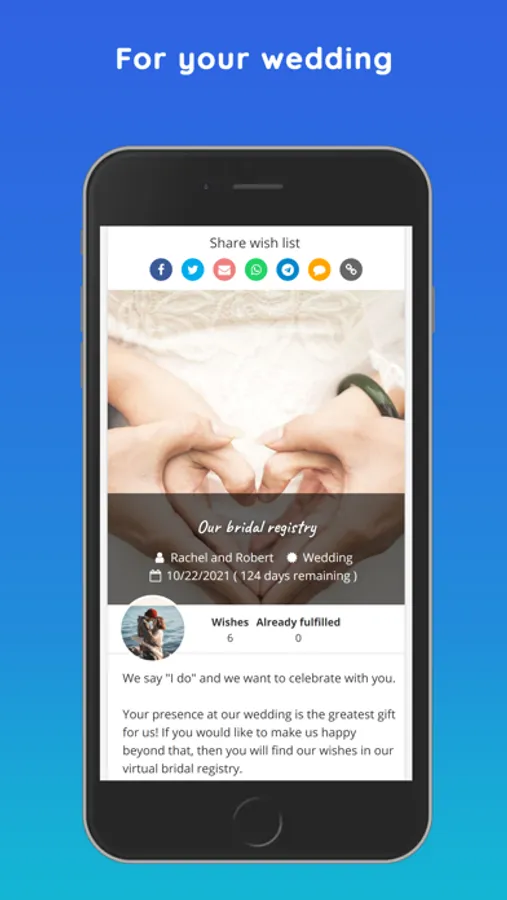By using Wishbob, you will make sure that your guests can look forward to the party as much as you do, and enjoy it to the fullest. Wishbob allows you to create wish lists easily, quickly and free of charge and to share it with your family and friends.
