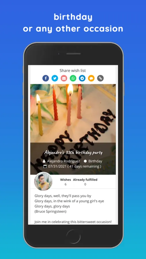 Online wish list for birthdays, Christmas, children’s birthdays, baby showers, weddings and any other occasion.
