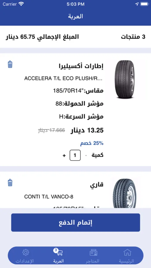 • شراء الإطارات من خلال التطبيق