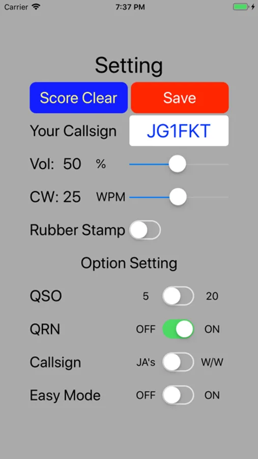 This app is a real CW QSO simulator for Amateur Radio. "599BK type QSO", "Rubber stamp type QSO" and "Contest type QSO" are supported. In addition, the call sign, signal level, CW speed, etc. that occur differ for each QSO in order to achieve realism. Furthermore, the call sign and CW speed of your own station that issues CQ can be set arbitrarily.