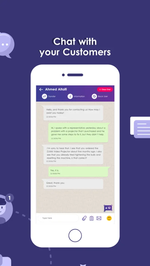 Helps you to reach directly to the customer before it goes off from website without making any purchase/sale. Get a real-time reporting system for Agents vs Customers including their Chat History, Rating System, Customize Chat Interface which match with your website theme and design, Block Spam Users/Bot, Auto Accept Chat requests if your business need no waiting time for customer, Round Robin & Faster Finger first methods to distribute chat requests amongst company agents.
