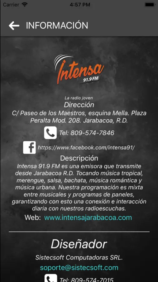 Intensa 91.9 FM es una emisora que transmite desde Jarabacoa R.D. Tocando música tropical, merengue, salsa, bachata, música romántica y música urbana. Nuestra programación es mixta entre musicales y programas de paneles, garantizando con esto una conexión e interacción diaria con nuestros radioescuchas.
