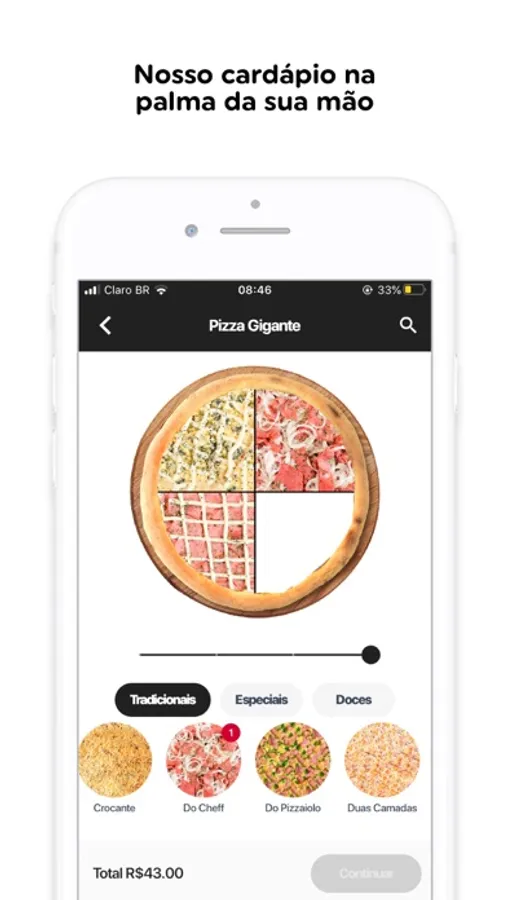 Você pode montar sua pizza de forma simples: arraste os sabores, saiba todos os ingredientes de cada sabor e tenha uma pré-visualização de como sua pizza vai ficar. Nunca foi tão fácil fazer um pedido de pizza!