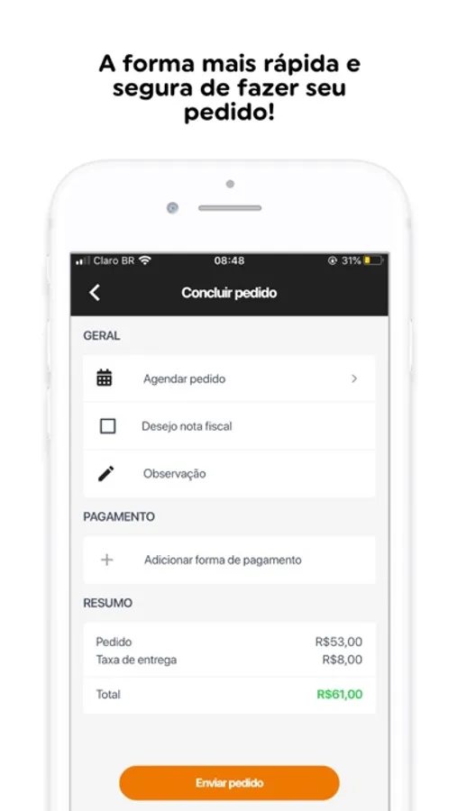 Depois de escolher o seu prato preferido, utilize o campo de observação para que tudo chegue do jeitinho que você gosta, podendo customizar os ingredientes do seu pedido.