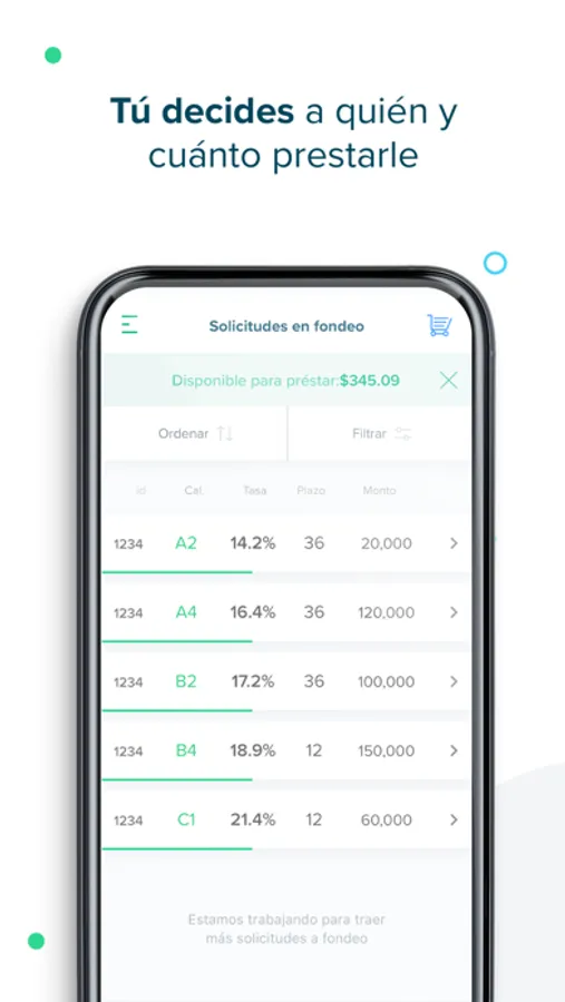 Invierte prestándole dinero a personas con buen historial de crédito y capacidad de pago comprobada, ¡usa nuestra aplicación y haz crecer tu dinero con el mejor rendimiento!