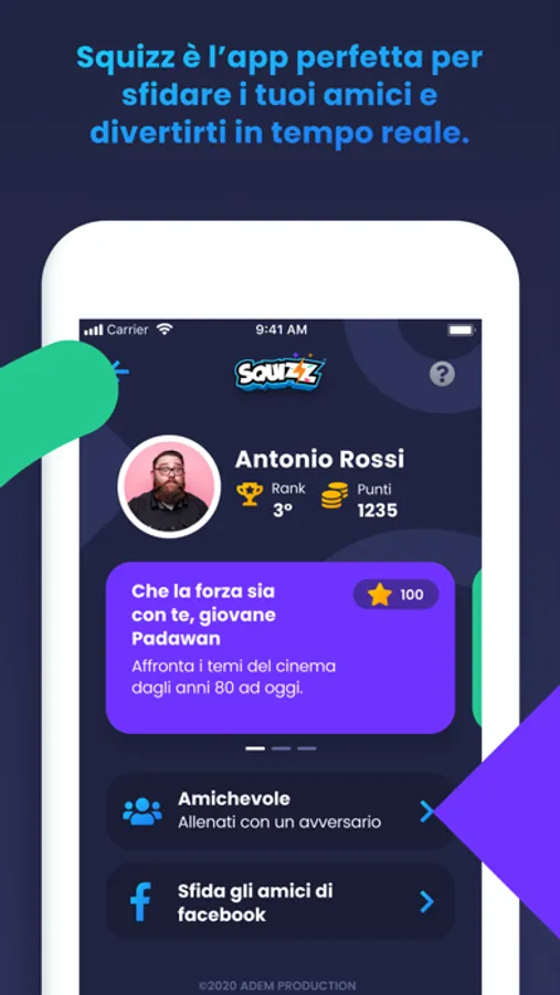 • GIOCA IN TEMPO REALE: 3, 2, 1…via! Rispondi il più velocemente possibile e ottieni più punti per vincere la sfida e diventare campione nazionale di Squizz.