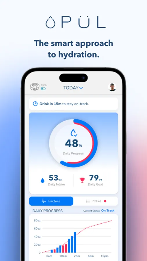 PÜL generates a personalized hydration plan for you based on factors like weather, activity level, personal habits, and much more.